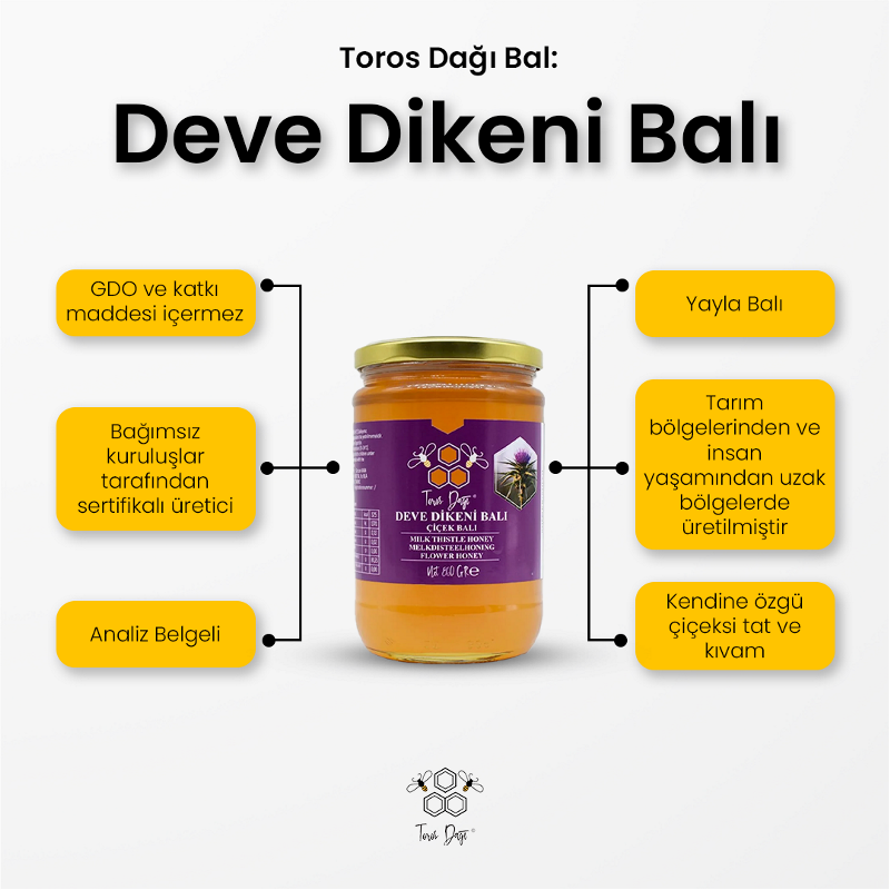 Anadolu’nun Aksaray bölgesinde doğal olarak yetişen deve dikeni çiçeklerinden elde edilen Deve Dikeni Balı, kendine has floral yapısı ile öne çıkar. İlkbaharın sonlarında açan deve dikeni çiçekleri, arılar için eşsiz bir nektar kaynağıdır.