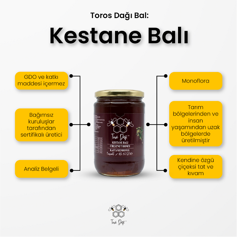 Koyu rengi ve güçlü kokusuyla fark yaratan bu özel bal, daha ilk kaşıkta doğanın farklı bir yüzünü hissettirir. Kestane Balı, içerdiği doğal fenolik bileşikler ve yoğun bitki kaynaklı esansiyel maddelerle kendine has bir yapıdadır.