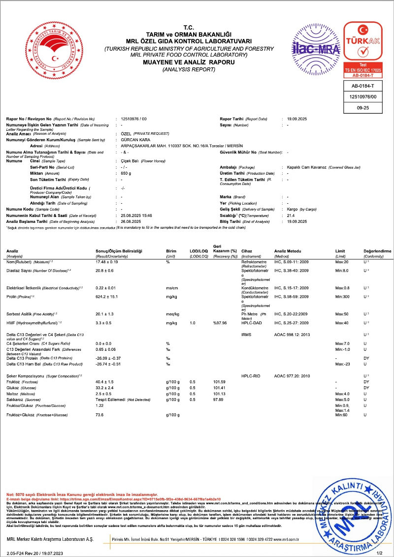 Üretim: Türk Gıda Kodeksine Uygun Olarak Üretilmiştir